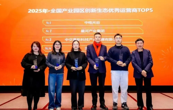 目前,中电光谷运营园区面积超过3500万平方米,服务企业及各类技术创新机构超过10000家。通过持续深化园区创新生态建设,中电光谷不断完善园区全生命周期运营与产业服务能力,为创新主体成长和区域产业升级提供稳定支撑。中电光谷此次获得“2025年·全国产业园区创新生态优秀运营商TOP5”第一名,是市场对其相关实践的认可。